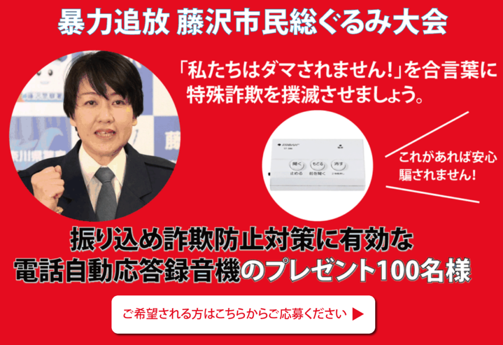 こうした活動を今まで以上に熱意を込め、一般市民、事業者、そして藤沢市&藤沢警察署が一体となって、藤沢の街から暴力団を排除し、追放する運動を推進し、安全で安心な街づくりに寄与する活動を活性化したいと考えております。
